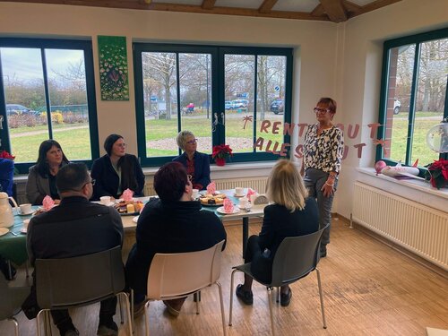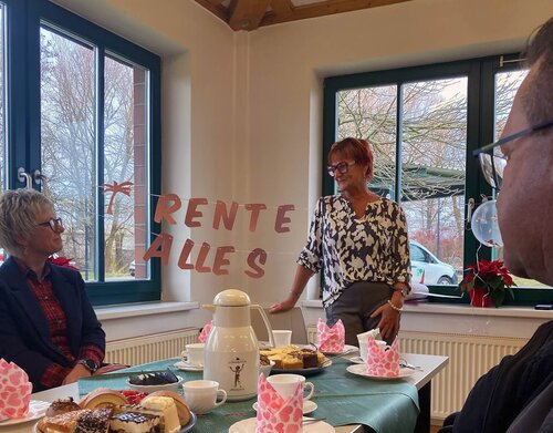 Am 12.12.2025 wurde unsere geschätzte Kollegin Frau Götze im Rahmen eines gemütlichen Kaffee- und Kuchenessens feierlich in den wohlverdienten Ruhestand verabschiedet. Seit 2010 war sie in der Greifenwerkstatt tätig und arbeitete über all die Jahre als Fachkraft für Arbeits- und Berufsförderung in der Hauptwerkstatt am Helmshäger Berg im Arbeitsbereich Hauswirtschaft. Von 2013 bis 2021 übernahm sie zusätzlich mit großem Engagement die Rolle der Teamleiterin.
