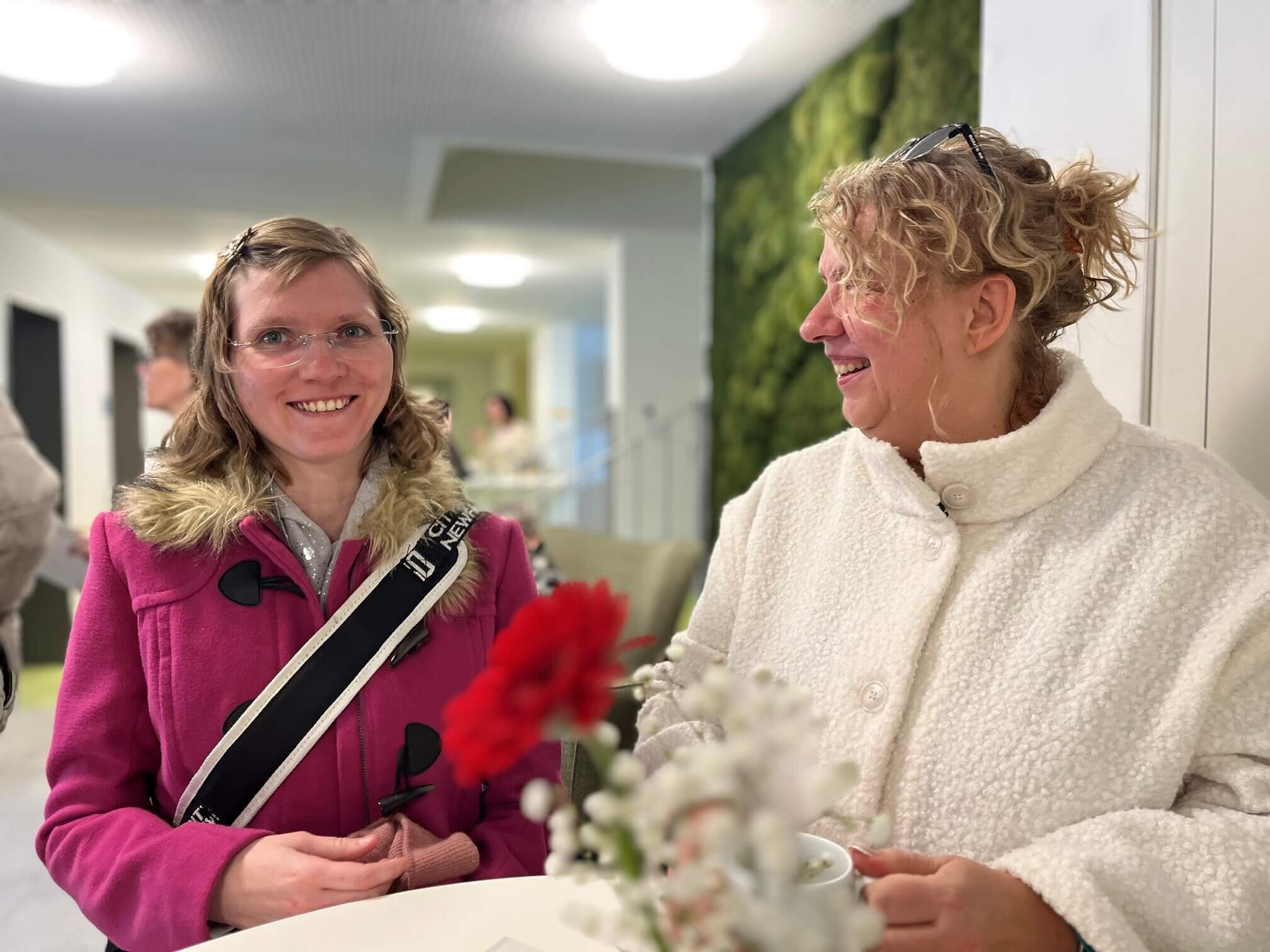 Manchmal beginnt ein neuer Weg genau in dem Moment, in dem sich eine Tür öffnet. Genau so ein Moment war der Besuch des Dienstes zur betrieblichen Inklusion beim Tag der offenen Tür im neuen Seniorenzentrum am Stadtpark. Die offizielle Eröffnung des Hauses ist für den 23. März geplant – doch schon jetzt konnten Interessierte einen ersten Eindruck von den neuen Räumlichkeiten gewinnen. Das Haus präsentierte sich bei der Besichtigung hell, offen und sehr einladend. Freundliche Zimmer, großzügige Gemeinschaftsräume und Terrassen sowie der eindrucksvolle Eingangsbereich mit einer großen Mooswand schaffen eine Atmosphäre, in der man sich sofort wohlfühlt. Ein Ort, der nicht nur für Bewohnerinnen und Bewohner, sondern auch für Mitarbeitende ein angenehmes Umfeld bietet.