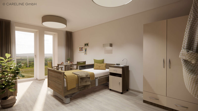 Unsere Bewohner*innen leben überwiegend in hellen Einzelzimmern mit bis zu 17,4 m². Für Paare stehen – je nach Verfügbarkeit – zwei großzügige Doppelzimmer mit 28,2 bis 33,4 m² zur Verfügung. Bodentiefe Fenster mit Sonnenschutz sorgen für viel Tageslicht und eine angenehme Atmosphäre. Alle Zimmer sind wohnlich eingerichtet und mit einem Pflegebett ausgestattet. Fußbodenheizung im ganzen Haus sowie zusätzliche Heizkörper in den Bädern bieten behagliche Wärme. In der Regel teilen sich zwei Personen ein modernes Bad mit ebenerdiger Dusche. Für ein Vollbad stehen nach Absprache drei Pflegebäder zur Verfügung.