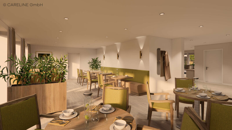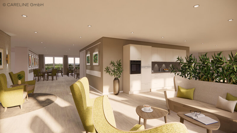 Die vier Wohnbereiche sind klar strukturiert und in kleine Pflegegruppen gegliedert. Jede Gruppe verfügt über einen eigenen Aufenthaltsraum mit Küche sowie Terrasse oder Balkon. Diese Struktur erleichtert die Orientierung, unterstützt die Eingewöhnung und ist besonders hilfreich für Menschen mit demenziellen Veränderungen.