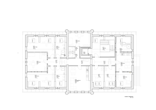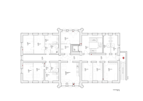 Die renovierte Wohngruppe erstreckt sich über zwei Stockwerke und bietet Raum für 12 Bewohner*innen. Die Einzelzimmer sind lichtdurchflutet und großzügig gestaltet. Sie sind möbliert, können jedoch nach individuellen Vorlieben auch mit persönlichem Inventar ausgestattet werden. Ein weitläufiger Gemeinschaftsraum mit angrenzendem Küchenbereich steht für gemeinsame Aktivitäten zur Verfügung. Die Zimmer haben eine Größe zwischen 20 und 27 m². Jeweils 2 Zimmer teilen sich ein Bad.