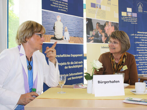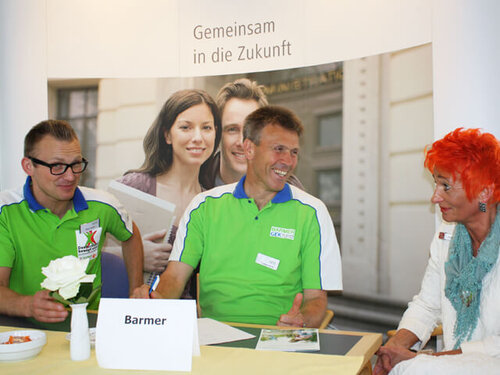 Am Stand des Bürgerhafens und der Barmer konnten sich die Gäste Informationen rund um das Thema betriebliches Gesundheitsmanagement einholen.