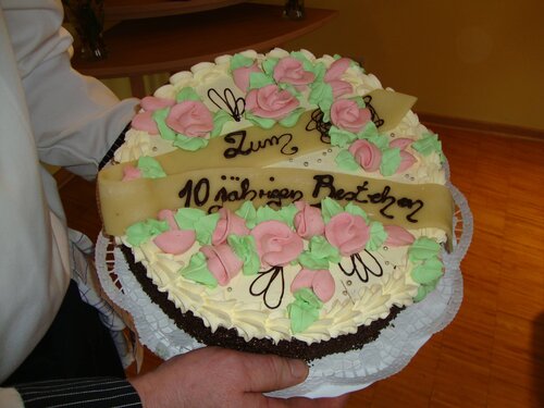 Anschließend ließen es sich alle Anwesenden am leckeren Buffet gut schmecken. Natürlich wurde auch mit einem Gläschen Sekt, auf die hoffentlich weiteren zehn Jahre, angestoßen!