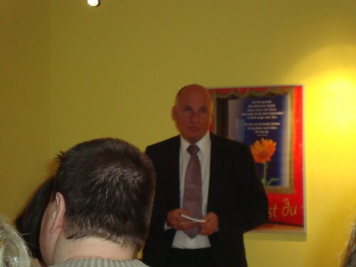 Zu diesem Anlass gab es eine Feierstunde im kleinen Rahmen. Die Heimleiterin überraschte mit einer wunderschönen Torte, die extra für dieses Jubiläum angefertigt wurde. Die Pflegedienstleiterin eröffnete das Zusammensein, sie begrüßte Heimbewohner, Eltern, Gäste und Mitarbeiter. Frau Nack, die im Elternrat ist, dankte allen Betreuern für die aufopferungsvolle Arbeit und das schöne Zuhause, welches wir für "unsere Kinder", geschaffen haben. Der hiesige Pastor hielt eine Andacht und umrahmt wurde alles von einem Posaunenchor, der im ganzen Haus für feierliche Stimmung sorgte.