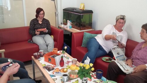 Jedes Jahr Ende September feiert die "Sonnenseite" Demmin ein ganz besonderes Ereignis: die Tagesstätte hat Geburtstag! In diesem Jahr war es der 19. Bei Kaffee und Kuchen wurden in fröhlicher Runde alte Fotos und Zeitungsartikel angesehen. Die eine oder andere lustige Anekdote aus den vergangenen 19 Jahren wurde dabei ausgepackt und hob die gute Stimmung. Für eine besondere Überraschung sorgte ein Geschenk zum Geburtstag von Kuratoriumsmitglied Ernst Wellmer: eine gerahmte Fotocollage mit den schönsten Eindrucken des gemeinsamen Besuches bei der Selbsthilfegruppe "Odnowa" in Demmins Partnerstadt Bobolice.