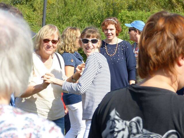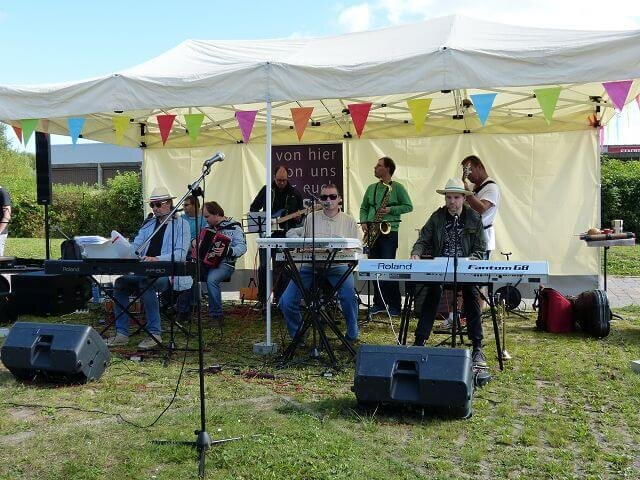 Bei bestem Wetter hatten wir also mehr als einen Grund mit allen Eltern, Angehörigen, rechtlichen Betreuern, Mitarbeitern und Teilnehmern ausgiebig zu feiern. Das Fest startete mit selbstgemachtem Streicheis von „BoddenLandEis“ aus Kemnitz. Bei einem leckeren Stück Kuchen und einer heißen Tasse Kaffee gab es nette Gespräche und Rückblicke auf die vergangenen Jahre. „Seeside“ und Gast Band „The Dandy Lions“ sorgten an unserem Jubiläum für reichlich Tanz und Spaß.