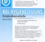 Die Ostseelandwerkstatt – Wäscherei ist berechtigt mit Wirkung vom 18.06.2007 das Hygienezeugnis RAL – GZ 992/2 für Krankenhauswäsche zu führen.…