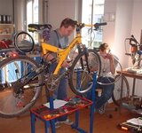 Die Mitarbeiter Martin Meschke und Jens Riesebeck aus der Fahrradwerkstatt der Greifenwerkstatt sowie der Gruppenleiter Toralf Bacher hatten am…