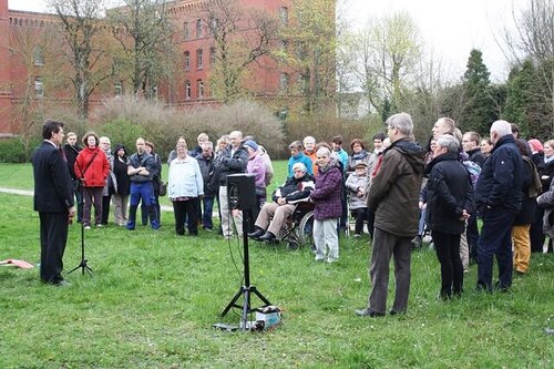 Schien in Gützkow noch die Sonne, so zeigte sich der April am Freitagnachmittag in Greifswald von seiner wechselhaften Seite. Doch ein frisch gepflanzter Baum freut sich natürlich auch über ein paar Regentropfen! Das symbolische Einpflanzen und Angießen wurde auch in Greifswald vom Oberbürgermeister unterstützt. Neben Dr. Stefan Fassbinder halfen zudem viele der zahlreich vertretenen Gäste aus den Einrichtungen vor Ort tatkräftig mit. Die Linde hat ihren Platz nun am Nexö-Platz und wird hoffentlich zu einem großen, starken Baum heranwachsen.
