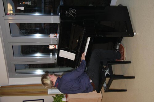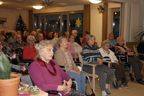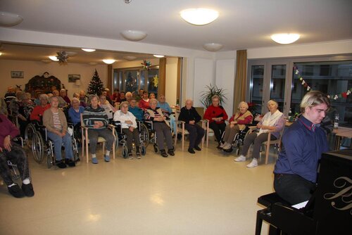 Zur Einstimmung zum 3. Advent spielte Jim Bruchalla alte Weihnachtslieder auf dem Klavier. Pünktlich um 15 Uhr saßen die Bewohnerinnen und Bewohner (einige mit ihren Töchtern) erwartungsvoll bereit, um den schönen Klängen zu lauschen. Einige kannten den Musiker aus den vergangenen Jahren, für diejenigen, die erst in diesem Jahr eingezogen sind, war es ein neues Erlebnis.