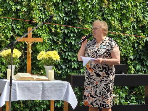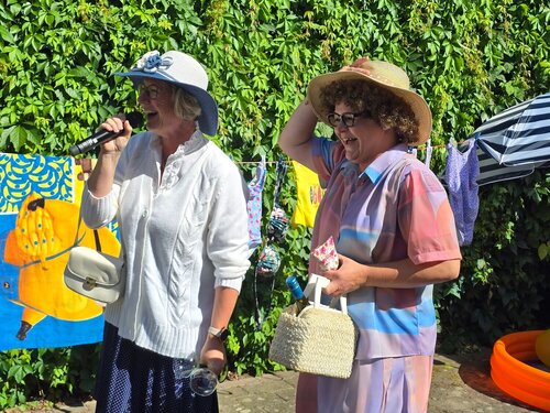 Einrichtungsleitung Birgitt Küthe, welche bereits seit der ersten Stunde im Haus tätig ist, ließ in ihrer Eröffnungsrede die letzten 30 Jahre Revue passieren und erinnerte sich an viele schöne und bewegende Momente. Natürlich nahm auch unser Vorstand, Dr. Michael Bartels, an der Veranstaltung teil und begann die Feierlichkeiten mit einer Andacht. Im Anschluss gab es für die rund 150 Besucher*innen, unter denen natürlich auch die Bewohner*innen des Hauses, die Mieter des Betreuten Wohnens am Markt sowie viele ehemalige Mitarbeitende waren, Kaffee und Kuchen. Musikalisch begleitet wurde das Sommerfest durch den „Blonden Hans“, der die Gäste mit vielen bekannten Schlagern und Volksliedern begeisterte. Immer dabei: die Mitarbeitenden des Pflegeheims, die sich schon im Vorfeld organisatorisch und kreativ ins Zeug gelegt hatten. Sie schmückten die Einrichtung, begleiteten die Bewohner*innen zur Feier, legten Kuchen auf, schenkten Getränke ein, verteilten Eis, verkleideten sich entsprechend dem Motto „Sommerreise“ und brachten mit ihren Showeinlagen die Gäste zum Schmunzeln. So wurde es ein bunter Nachmittag mit toller Stimmung, der von allen Teilnehmenden mit Genuss und Leichtigkeit zelebriert wurde.