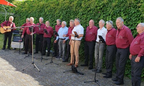 Die Hanzezangers halten Wort! Wie versprochen, erfreuten die bekannten Sänger aus Deventer/Holland auch in diesem Jahr am Sonntagvormittag traditionell alle Bewohnerinnen und Bewohner des Pflegeheimes Gertraudenstift Demmin mit ihrem Gesang. Bei herrlichem Sommerwetter, geschützt durch große Sonnenschirme, lauschten die Senioren im Freien den Ausführungen und der aufmunternden Musik der Gruppe, klatschten und schunkelten im Takt der Lieder mit. Aber auch Bürgermeister Thomas Witkowski sowie seine beiden Vorgänger, die Altbürgermeister Ernst Wellmer und Dr. Michael Koch, waren gekommen und sangen beim „Demmin-Lied“ kräftig mit.