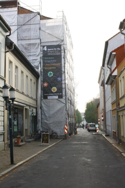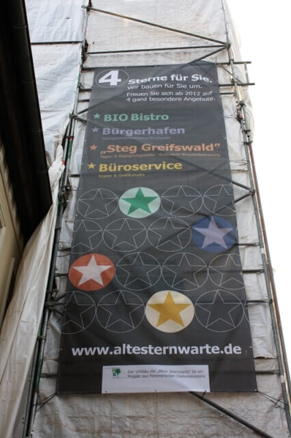 Seit kurzer Zeit prangt stolz an der Fassade der „Alten Sterwarte“ ein 2,50m x 7,00m großes Banner und informiert so die GreifswalderInnen auf welche Angebote Sie sich demnächst freuen dürfen.