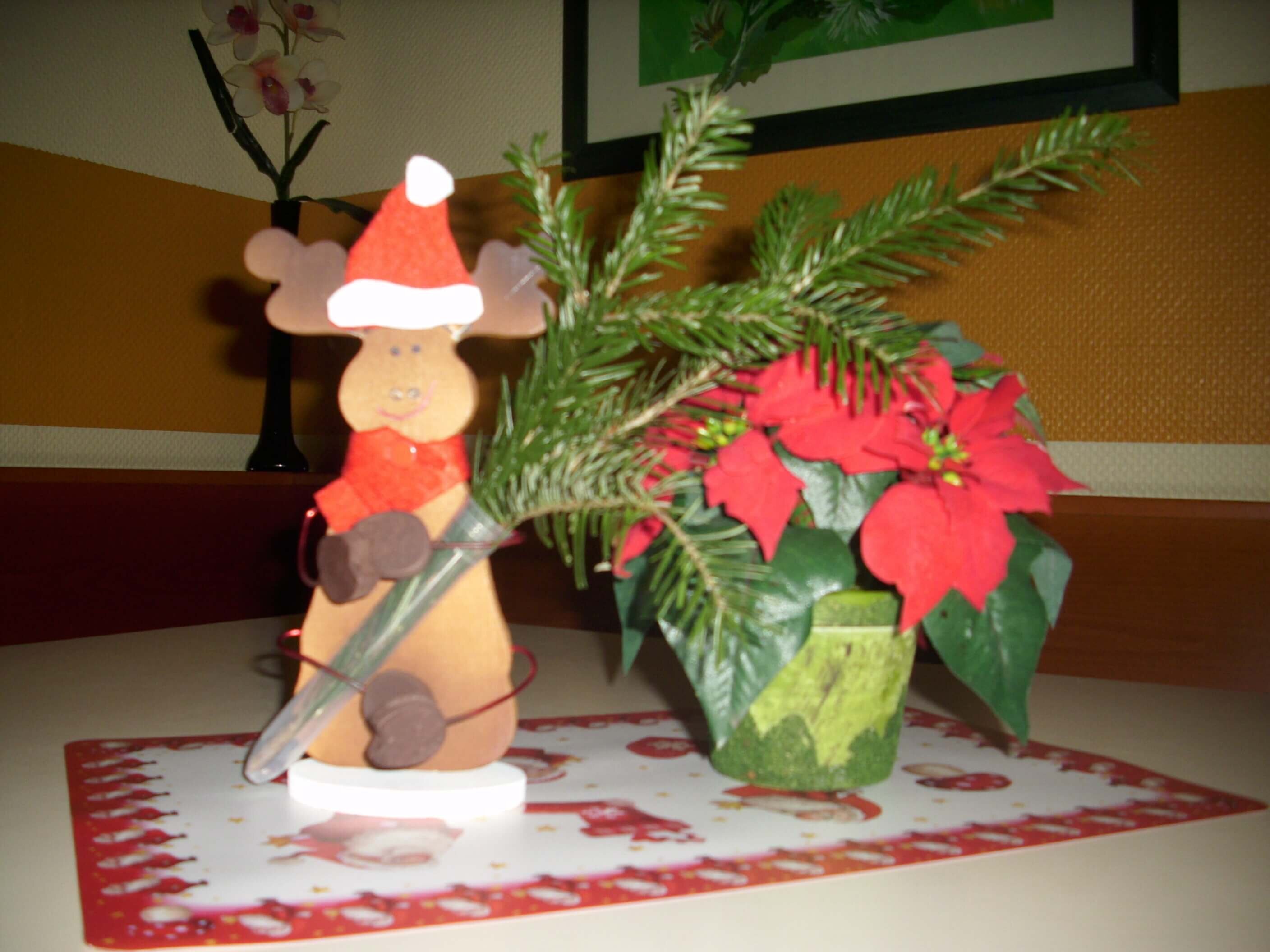 Manche, die keine Lust zum Backen hatten, beteiligten sich am Erstellen von weihnachtlicher Dekoration. Viele Stunden lang wurde in gemütlicher Runde geschnitten, gefaltet, gemalt, geklebt …. So entstand vielfältiger Fenster- und Tischschmuck, mit der das Haus Usedom in eine weihnachtliche Atmosphäre verwandelt wurde.