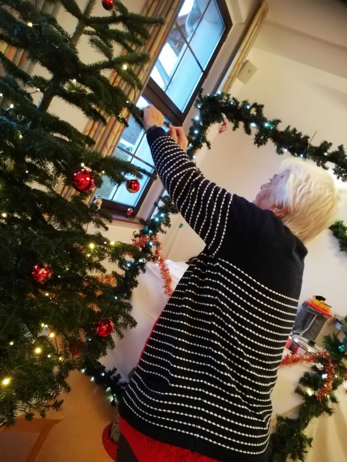 Die Adventszeit hat begonnen und mit ihr kehren in jedem Jahr auch die vorweihnachtlichen Traditionen zurück. So auch in Gützkow. Im Nikolaiheim haben in dieser Woche die Mitarbeitenden des Betreuungsteams, in Zusammenarbeit mit einigen Bewohner*innen des Pflegeheims, damit begonnen, den jährlich im Haus stattfindenden Adventsmarkt vorzubereiten. Ganz oben auf der Aufgabenliste stand natürlich das Schmücken eines festlichen Baumes. Es wurde bunte Kugeln, Glöckchen und Lichterketten angebracht, bis alle mit dem Ergebnis zufrieden waren.