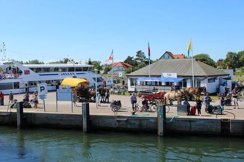 In Vitte erwartete uns eine große Pferdekutsche, die uns eine ganze Stunde zur Verfügung stand, um viel von der Insel zu sehen und vom Kutscher zu erfahren. Aufgefallen sind uns Unmengen von Sanddornpflanzen an den Wegesrändern die zu leckeren Dingen verarbeitet werden. Es wurden ganz viele Fragen gestellt auf die unser Kutscher immer eine Antwort hatte. Erfahren haben wir z. B., dass auf diesem schönen Fleckchen berühmte Maler und Künstler gelebt haben. Neugierig waren wir auf die Inselkirche. Hier erfuhren wir, dass diese keinen Kirchturm hatte. Anschließend besuchten wir die Grabstelle von Gerhard Hauptmann, der hier auch ansässig war. Zur Pause kehrten wir in ein Gasthaus ein und genossen unser gemeinsames Mittagessen.