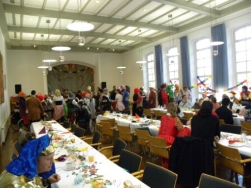 Ein schön geschmückter Saal erwartete seine Gäste. Die Tafeln waren dem Thema entsprechend toll eingedeckt: „ Alles ist bunt“.