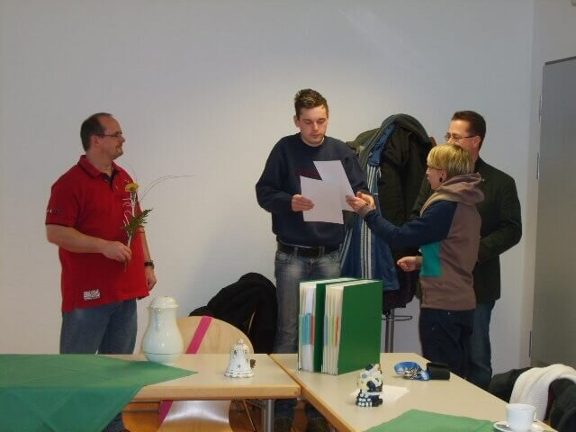 haben die Mitarbeiter der Montagegruppe in Züssow ihren Kollegen Marcel Bruß bei einem gemeinsamen Frühstück offiziell in ihren Reihen aufgenommen. Er hat in dieser Gruppe seine berufliche Bildung gemeistert und ist mittlerweile fester Bestandteil dieser geworden. Herr Bruß nahm seine Urkunde in Empfang und war über die Anerkennung der Mitarbeiter sehr glücklich. Ihm wurde von allen, die ihn in den letzten zwei Jahren begleitet haben, gratuliert.