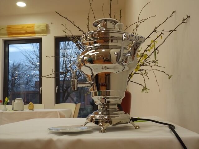Wir bestellten eine themenbezogene Beköstigung und auch ein Samowar wurde uns bereitgestellt.