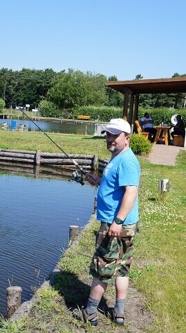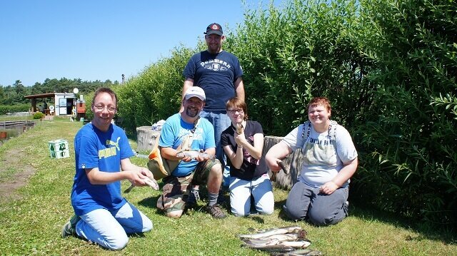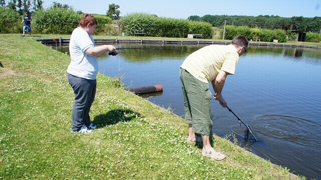 Für fünf Klienten, einem Angehörigen und zwei Betreuer des Bernhardhauses, ging es morgens am 04.07.14 zu den Angelteichen nach Ückeritz.