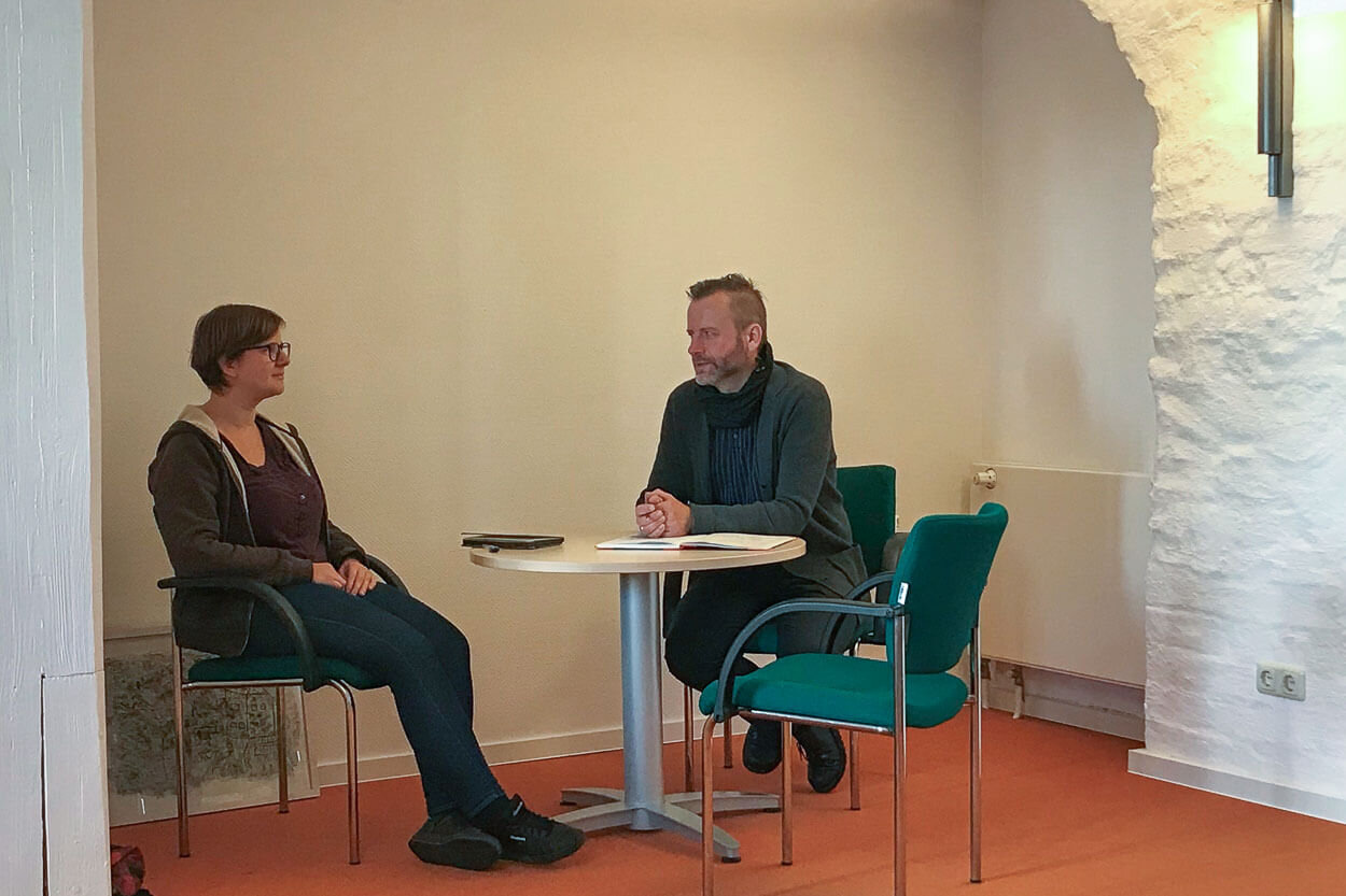 Sie kommt gerade vom Dom St. Nikolai, wo sie wichtige Absprachen für diese bald anstehende ehrenvolle Veranstaltung getroffen hat. Frau Hassler ist seit Januar 2021 im Dekanat der Universitätsmedizin im Promotions- und Habilitationsbüro beschäftigt und betreut dort administrativ gemeinsam mit einer weiteren Kollegin die ca. 100 Promotionsverfahren und 5-10 Habilitationsverfahren, die jährlich an der UMG abgeschlossen werden. Sie beantwortet nach Möglichkeit und mit aller Geduld und Freundlichkeit verschiedenste Fragen der Promovierenden und unterstützt die betreuenden Professorinnen und Professoren. Gut, dass es Frau Hassler gibt, ‚denke ich‘, denn wer sich theoretisch tief in Materie und Stoff begibt, hat manchmal nicht die Zeit und den Blick für alltägliche und dennoch wichtige Fragen. Auch im Hinblick auf den großen Tag am 19.11.2021.