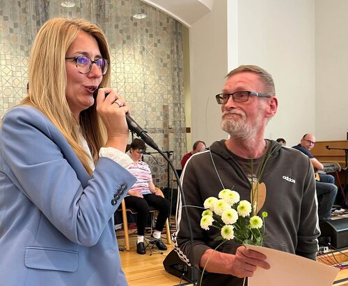 Besonders berührend waren die Stimmen der Fachkräfte, die von ihrer Wertschätzung erzählten. „Wenn du mal nicht da bist, ist es schon ganz schön schwer, deine Arbeit mitzumachen.“ – Worte, die eine Jubilarin tief bewegten. Es waren die großen Zahlen – 20, 25, 30 oder sogar 40 Jahre – die beeindrucken. Aber es waren die kleinen Momente, die den Saal zum Leuchten brachten: