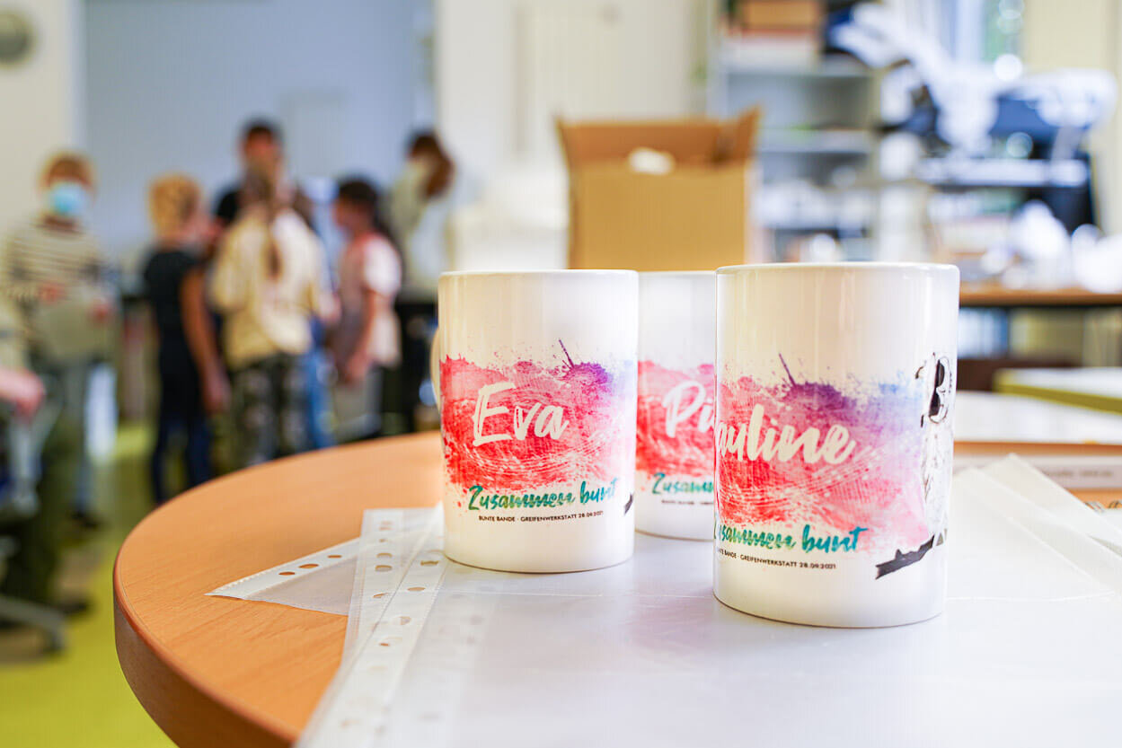 Durch die Zusammenarbeit der vormals separaten Arbeitsbereiche stehen nun die Türen offen für frische Ansätze, gemäß dem Motto „Auf zu neuen Ufern!“ Verschiedenste Angebote aus dem Druck- und Grafikbereich laufen hier zusammen und geben neuen, kreativen Ideen viel Raum zur Entwicklung. Neben Gestaltungs- und Illustrationsaufträgen werden auch Shirts, Beutel, Tassen und Vieles mehr bedruckt, Schriftstücke weiterverarbeitet und Serienbriefe erstellt.