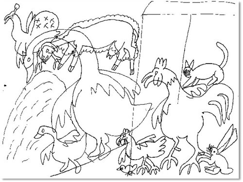 Auf dem Heimweg haben wir die Hühner, Enten, Gänse, den Pfau und auch die Schafe auf der Weide gesehen.