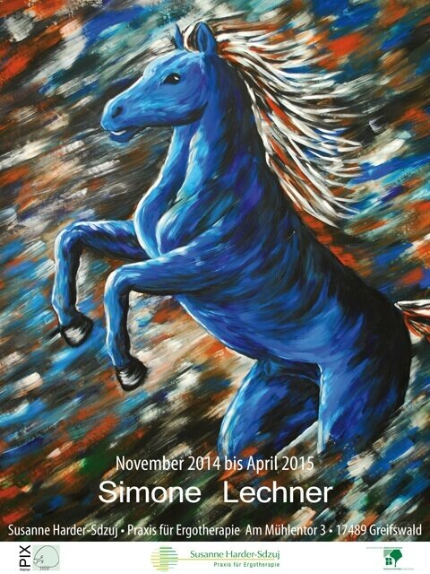 In der Praxis für Ergotherapie Harder-Sdzuj, Am Mühlentor 3 in Greifswald, präsentiert Simone Lechner Malerei und Grafik aus einem Jahr im PIX.