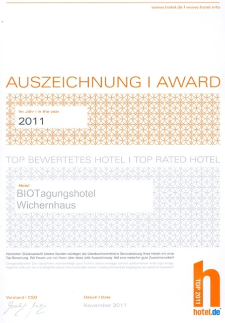 Kunden, einer der größten Buchungsseiten Deutschlands „hotel.de“, wählten das BIO Tagungshotel zu einem Haus mit ausgezeichnetem Service.