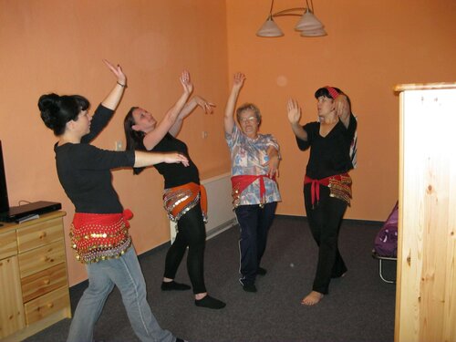 Momentan werden 2 Tänze nach einer vorgebenen Choreografie eingeübt. In den nächsten Wochen wird zusätzlich ein Improvisationstanz ins Repertoire aufgenommen. Den Frauen der Bauchtanzgruppe bereitet das Training viel Freude, das gemeinsame Erlebnis in Bewegung und Tanz wirkt sich besonders positiv auf die Selbstwahrnehmung aus.