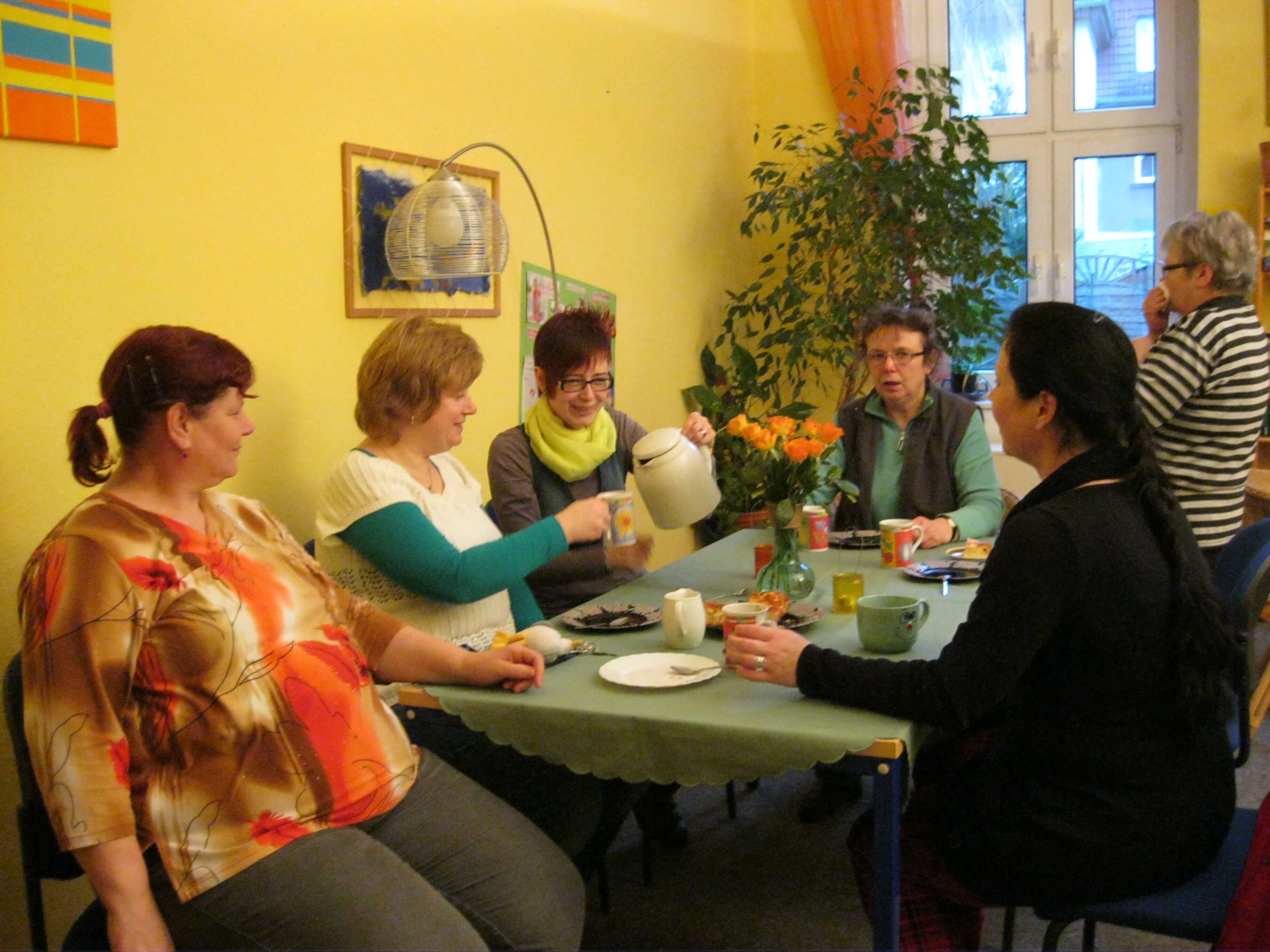 Zu den regelmäßigen Angeboten gehören Gesprächsrunden, Entspannungsübungen und gemeinsame Koch- und Backnachmittage. "Der Treff" wird gern genutzt um Kontakte zu knüpfen, der häuslichen Isolation entgegenzuwirken und um miteinander ins Gespräch zu kommen.