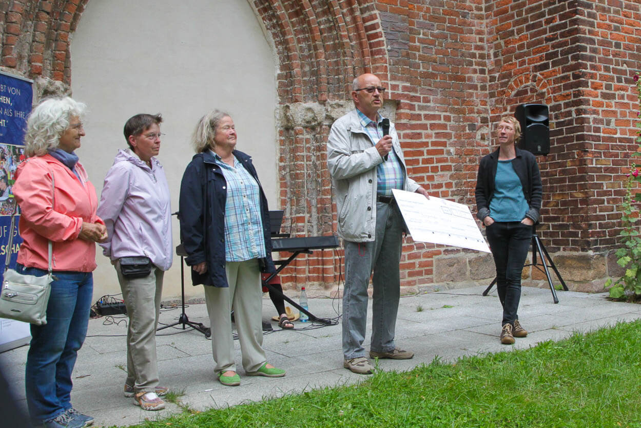 Mit Sorge schauten die Organisator:innen des Bürgerhafen Greifswald am 22. Juli auf die heranziehenden dunklen Wolken, die durch den Wind immer näher rückten. Sie ließen ahnen, dass der Nachmittag, an dem das Benefizkonzert stattfinden sollte, nass und windig werden könnte. Aber wie ein Wunder zog der Regen (abgesehen von ein paar Tropfen) vorbei, ein wundervolles Buffet konnte dank vieler ehrenamtlicher Unterstützer:innen aufgebaut werden und die Technik wurde von vor Nässe schützenden Plastiktüten befreit.