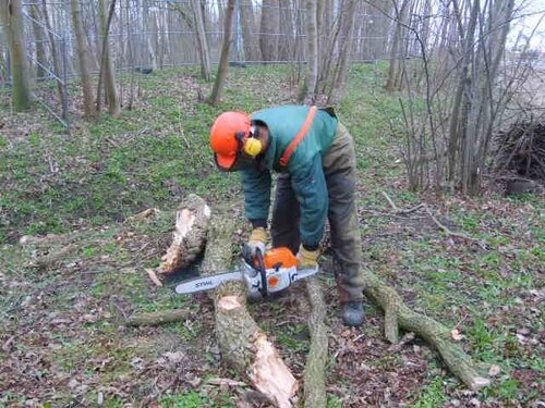 Die Arbeit mit einer Kettensäge ist mit nicht unerheblichen Gefahren verbunden. Sowohl von der Säge selbst bzw. ihrer frei umlaufenden Kette als auch von der so genannten Zugspannung im Holz geht diese aus. Um es gar nicht erst zu Verletzungen kommen zu lassen, ist somit größtmögliche Achtsamkeit notwendig. Vorsicht als auch Umsicht allein genügen aber dennoch nicht. Vielmehr muss dem Umgang mit der Kettensäge daher eine weitreichende, sachlich angemessene sowie inhaltlich umfängliche Qualifizierung vorausgehen. Genau einer solchen Herausforderung stellten sich in der vergangenen Woche erfolgreich ein Mitarbeiter der Greifenwerkstatt sowie ein Teilnehmer, der hier derzeit noch seine berufliche Bildung absolviert. Beide - einer am Standort Greifswald und der andere in der Betriebsstätte Züssow - sind im Bereich von Garten- und Landschaftsbau sowie /-pflege tätig.