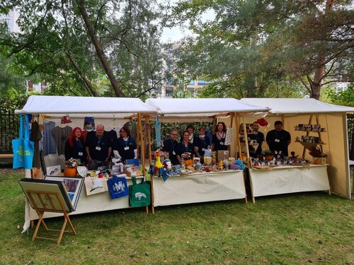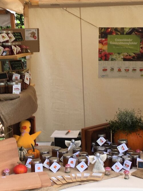 Die vielen Besucher der Veranstaltung staunten nicht schlecht: Unsere Mitarbeiter aus dem Hotel Ostseeländer, der Hauswirtschaft und dem Atelier PIX waren bestens informiert und unermüdlich im Einsatz beim Erklären, Präsentieren und Verpacken ihrer Werkstattprodukte und machten ganz nebenbei jedem Marktschreier Konkurrenz. So wechselten delikate Aufstriche der Feinkostmanufaktur aus regionalen Produkten, witzige Beutel, dekorative Keramik- und praktische Tischlereiprodukte, Malereien, Kalender und Postkarten mit PIX-Motiven den Besitzer. Zwischendurch gab es ein unterhaltsames musikalisches Programm, mitreißend vorgetragen auf umfunktionierten Gartengeräten – das erlebt man auch nicht jeden Tag!