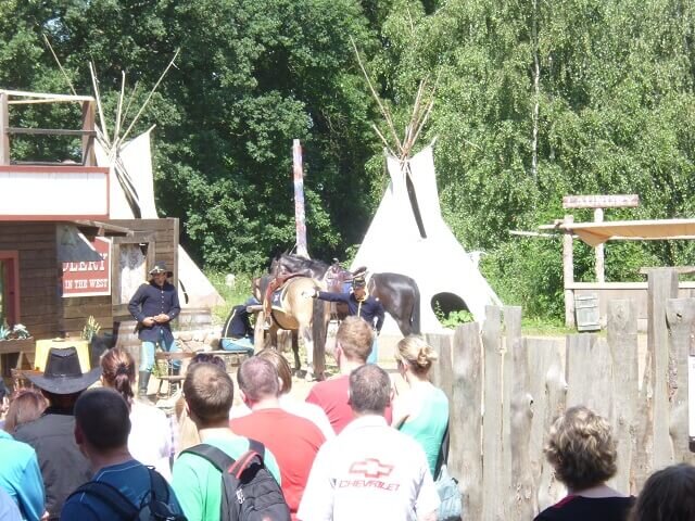 Nach einer aufregenden Stuntshow im Saloon setzten wir unsere Besichtigungstour durch die Westernstadt fort. Als wir im Indianerdorf angekommen waren, begrüßten uns mehrere Tiere.