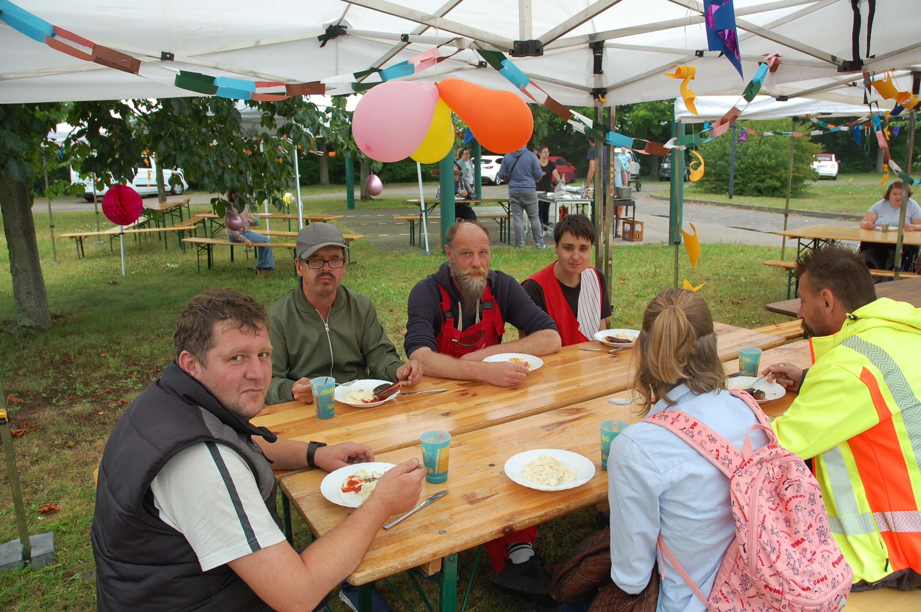 Trotz teils kräftiger Regenschauer zeigten alle Beteiligten, was Zusammenhalt bedeutet. Zelte wurden auf- und abgebaut, es wurde gegrillt, Blumen schmückten den Speisesaal, Bierbänke wurden trockengewischt, Kuchen vor dem Regen gerettet und natürlich wurde Musik gemacht und getanzt.