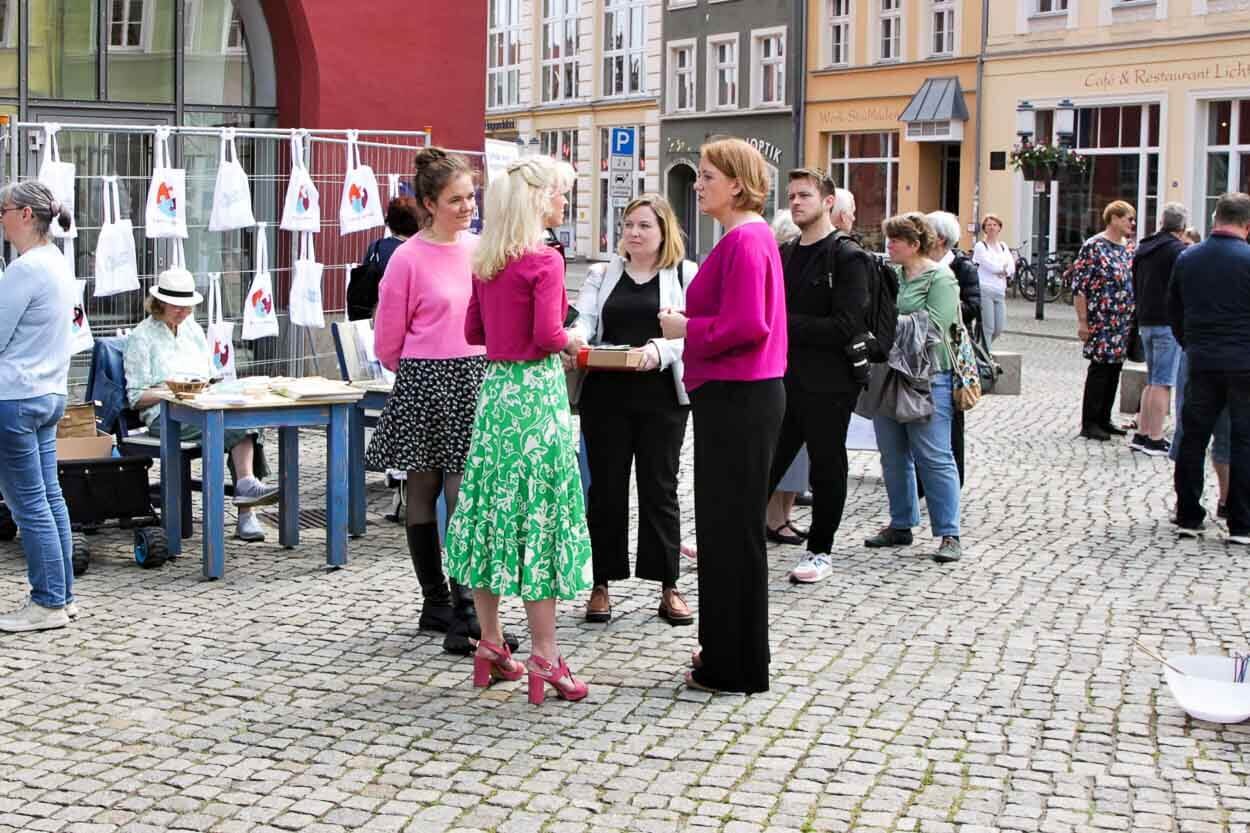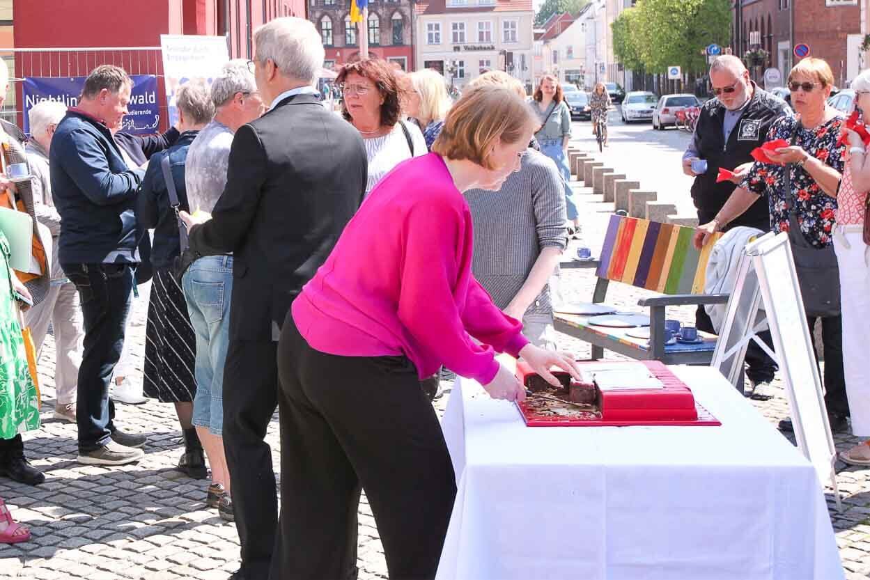 Zum Auftakt der Aktion am 14.05. besuchte Bundesfamilienministerin Lisa Paus das Mehrgenerationenhaus Bürgerhafen in Greifswald. Die Ministerin informierte sich über die Arbeit des Bürgerhafen und nahm an einer Podiumsdiskussion im Café und Restaurant Lichtblick teil. Vertreter:innen aus der Wissenschaft, dem Studierendenwerk Greifswald, dem Bürgerhafen und dem Café für Alleinstehende diskutierten mit der Ministerin zum Thema Einsamkeit. Anschließend eröffnete Frau Paus die Aktionstage auf dem Greifswalder Fischmarkt mit dem Anschneiden einer Torte. Besucher:innen hatten die Möglichkeit, sich über Angebote des Bürgerhafen zu informieren, mit Studierenden der Universität ins Gespräch zu kommen oder gemeinsam Boule zu spielen. Als besonderes Highlight konnten Interessierte die Fahrradrikscha des Bürgerhafens ausprobieren, mit der mobilitätseingeschränkte Menschen von ehrenamtlichen „Piloten“ durch die Stadt gefahren werden können.