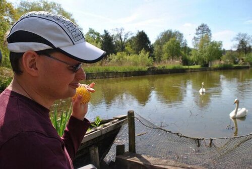 Am Ende des Rundganges gab es dann die Möglichkeit, die an dem Tierparkteich befindliche Karpfenfutterstelle zu besichtigen. Das war ein besonderes „Highlight“, weil sich dort immer besonders viele Karpfen versammeln, um von den Besuchern gefüttert zu werden.