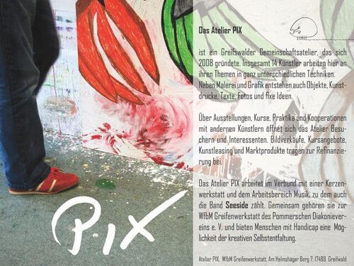 Generell besteht die Möglichkeit alle Gemälde und Grafiken des Ateliers PIX zu erwerben. In den letzten Jahren wurden auch vermehrt Auftragsarbeiten realisiert. Im Falle der EWN-Kantine einigten sich Essenversorger und Atelier über einen Leasingvertrag.
