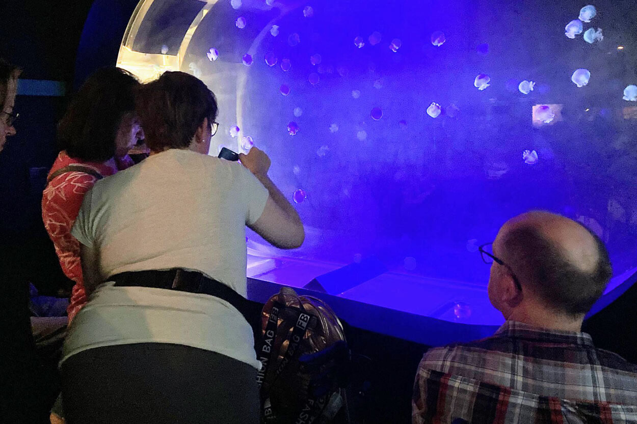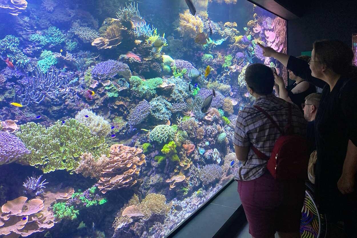 Michael schrieb: „Es gab viele Tiere zu sehen…Watussi-Rinder waren mit zwei Zebras draußen und spielten…zwei große Schildkröten begrüßten uns am Eingang." Christin staunte, sie „hat solche Kanonenkugelquallen noch nie gesehen“ und Anne gefiel „das Faultiermädchen am besten“.