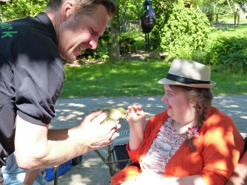 Wir bekamen einen Einblick in die Tierwelt und die Möglichkeit einige Tierparkbewohner, wie z.B. den Tausendfüßler, Python, Schildkröte, Ratte, Hase und auch Uhu Ulli hautnah kennenzulernen. Mutige Teilnehmer trauten sich sogar die Python um den Hals zu legen oder gar die Krallen von Uhu Ulli anzufassen. Herr Tetzlaff gab uns interessante Information über den Lebensraum, Nahrung, Körpermerkmale und Besonderheiten im Umgang mit den einzelnen Tieren.