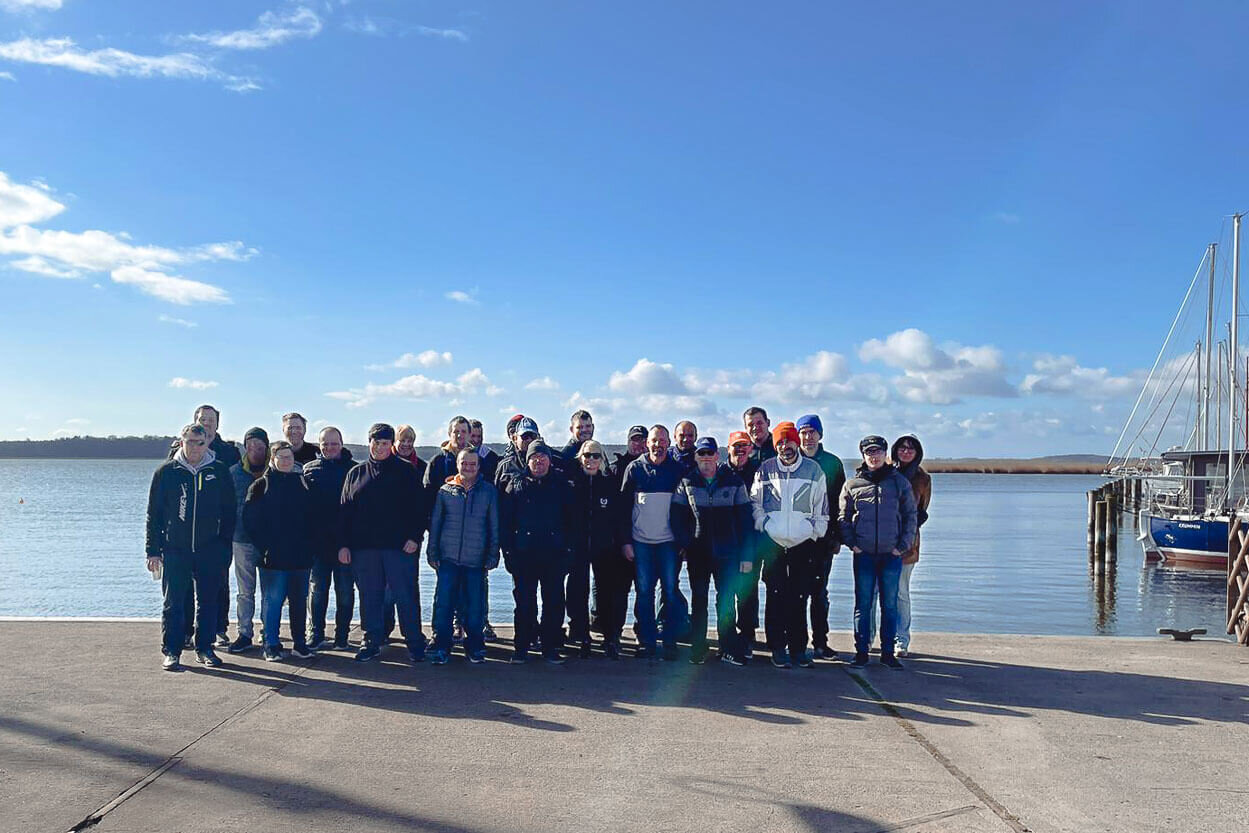 In Vorbereitung auf ihre diesjährige Bildungsfahrt haben sich die Mitarbeitenden des Bereiches Garten- und Landschaftspflege aus Greifswald für die Insel Usedom entschieden. Naturhafen und Naturschutzpark in und um Krummin passten perfekt, um fachliches Wissen zu Fauna und Flora direkt vor Ort zu erwerben. Das Team bewunderte die vom Schilf umgebene Wasserlandschaft und es war Zeit für ein erstes Gruppenfoto.
