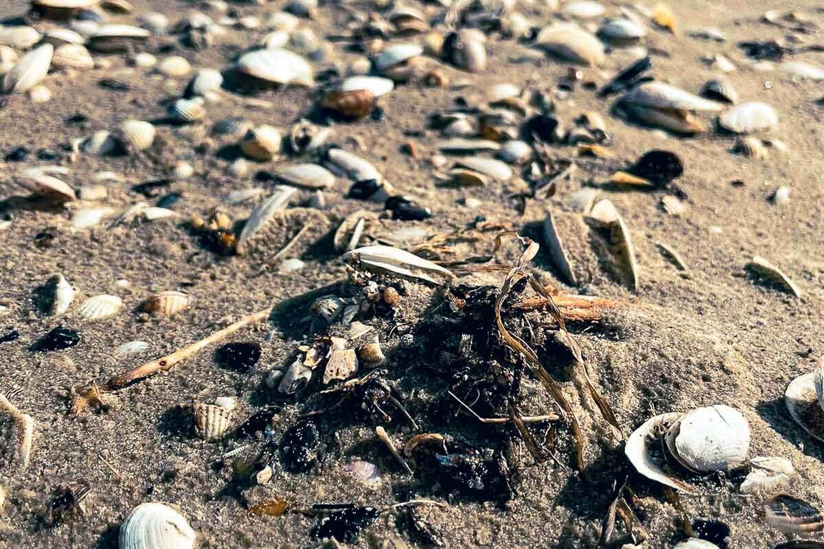 Danach ging die Fahrt weiter in das Ostseebad Trassenheide. Hier fanden die Kolleg:innen ein idyllisches Fleckchen an dem insgesamt 3,9 Kilometer langen, feinen Sandstrand. Im Hintergrund zeigte sich der imposante Kiefernwald, davor das Meer… Zeit für Fotos, einen kleinen Einblick in den Küstenschutz sowie in vorhandene strandtypische Vegetation. Eine Vielzahl verschiedener Muschelarten und Algen kamen am Strandufer zum Vorschein und manch einer wagte sich sogar barfuß in das kalte Wasser der Ostsee.