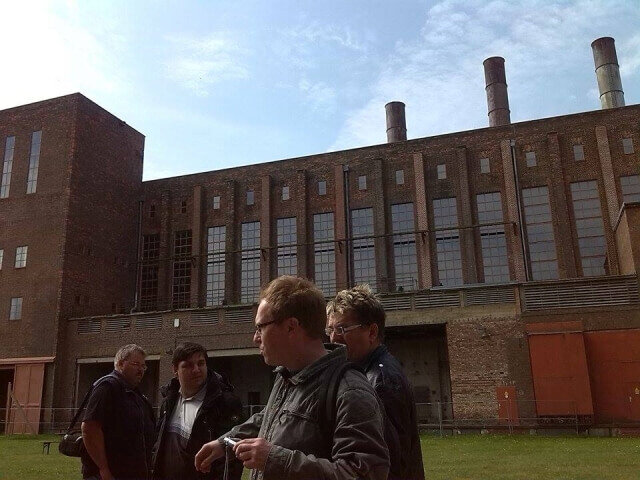 Später ging es dann weiter in das noch übrig gebliebene Gebäude und uns erwartete eine Führung durch die Waffenfabrik des Militärs. Das Kraftwerk erzeugte Energie für die Produktion von Lenkraketen und Waffen mit Sprengköpfen die, für den Einsatz im Krieg hergestellt wurden. Die Fabrikmitarbeiter wurden damals auf einen riesigen Schienennetz mit S- Bahnen hin und her tranzportiert. Also morgen von zuhause abgeholt und zur Arbeitsstelle gebracht und abends dann wieder zurück gebracht. Auf dem Militärgelände waren über 15.000 Mitarbeiter beschäftigt. Das Stromkraftwerk ist das einzige noch existierende Gebäude, denn zur damaligen Zeit wurde Peenemünde teilweise durch militärische Bombenangriffe zerstört. In der Fabrik selbst konnten sich die Mitarbeiter des Kopier &- Grafikstudios einen Einblick verschaffen. Es gab viel Bildungsmaterial zum Lesen und anfassen. Nach dem 2. Weltkrieg wurden alle weiteren Gebäude außer das Kraftwerk und die Steuerzentrale durch Sprengung abgerissen.