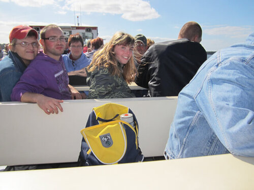 Danach ging es in eine Glaswerkstatt, in der uns ein Glasbläser die Entstehung einer mundgeblasenen Vase vorführte. Alle waren erstaunt über sein Talent und Geschick. Jeder bekam als Geschenk ein Glas mit eigener Gravur. Jetzt begann uns der Magen zu knurren und wir gingen zu Tisch. Als sich alle gestärkt hatten brachte uns der Reiseführer zur Bootsanlegestelle der Hotelanlage, von wo auch gleich das Fahrgastschiff ablegte. Eine Stunde fuhren wir mit dem Schiff und ließen uns vom Kapitän die Sehenswürdigkeiten erklären. Bei viel Sonne ging es dann zurück ins Hotel.
