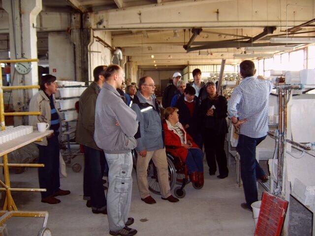 Nach einer erholsamen Nacht ging es am nächsten Tag zur Besichtigung der Keramikmanufaktur Dornbusch GmbH in die Stadt. Eine ausführliche Erläuterung über die Produktionsabläufe und die angewendeten Verfahren in der Serienfertigung wurde jedem Teilnehmer vermittelt. Nach der Führung durch den Leiter der Manufaktur hatten alle die Möglichkeit sich frei in den Produktionshallen zu bewegen und mit den Angestellten ins fachliche Gespräch zu kommen und Fragen zu stellen. Ganz besonders wurden die großen 3m³ Gas befeuerten Brennöfen und die großen beheizten Gießstrecken bestaunt. Für alle war die Besichtigung und die damit verbundenen Einblicke einer Keramikwerkstatt, welche vom freien Markt lebt ein nachhaltiges Erlebnis. Der späte Nachmittag und der Abend waren der freien Gestaltung zugedacht. Das Freizeitangebot vom Hotel, Schwimmbad/Sauna zu benutzen oder eine Bootsfahrt über die Gewässer und eine ausgedehnte Wanderung wurden ausgiebig angenommen.