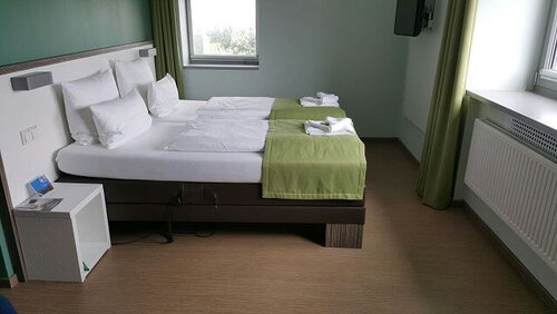 Das Hotel ist ausgerichtet auf Gäste mit Handicap. In allen 95 Zimmern sind die Bäder für Rollstuhlfahrer geeignet und alle öffentlichen Bereiche sehr großräumig gestaltet. Aber nicht nur an die Gäste wurde gedacht: Uns beeindruckte, dass bei der Ausstattung auch viel Augenmerk auf die leichte Reinigung und Pflege der Zimmer gelegt wurde. Es gibt keinen Teppich, dafür schnell zu reinigenden PVC-Fußboden, wenig Glas und keinen „Schnickschnack“. Und trotzdem sehen alle Zimmer sehr modern und wohnlich aus.