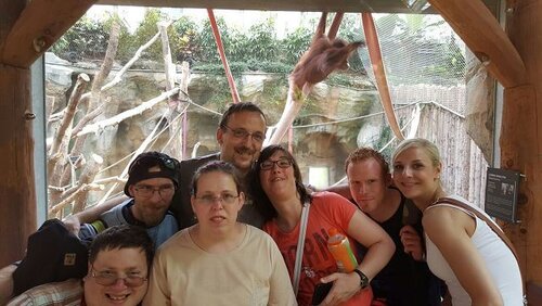 Orang-Utans und Gorillas leben hier in naturnahen Lebensräumen zusammen mit Gibbons, Faultieren und Zwergseidenäffchen und wir – auf geschlängelten Pfaden durch den Dschungel streifend - mittendrin. Eine Hängebrücke führte uns in greifbare Nähe zu den Orangs.