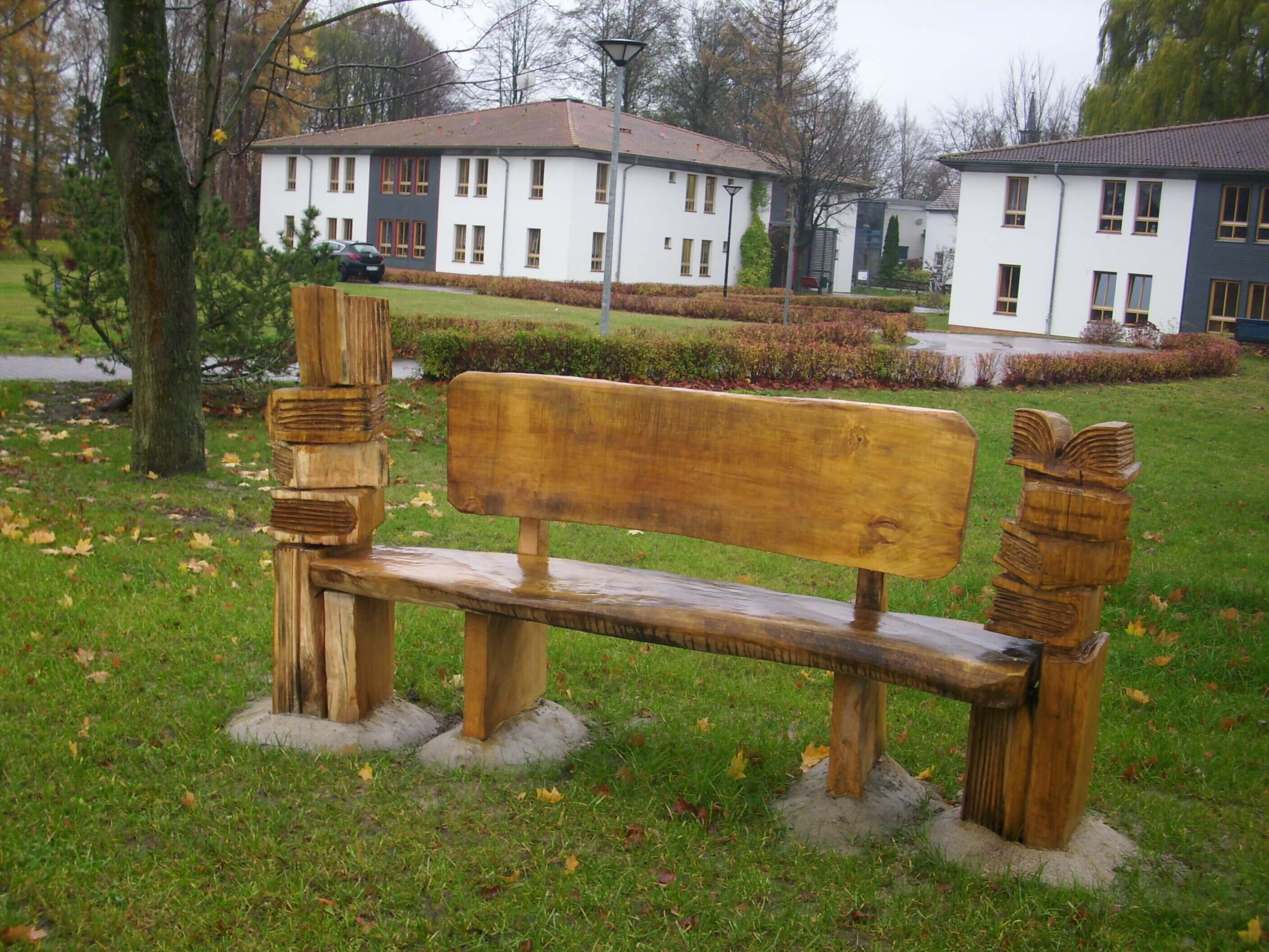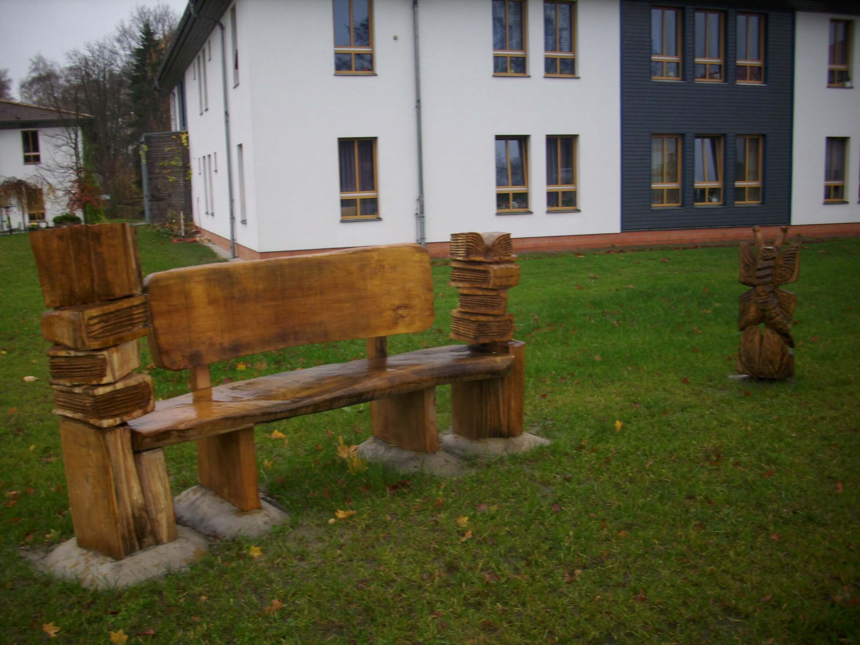 Vor ungefähr einem Jahr hatten zwei Bewohner aus dem Haus Rügen die Gelegenheit, an einem Holzwerkshop - organisiert vom Kreisdiakonischen Werk Greifswald e.V. - im Rahmen des Projektes „Szenenwechsel“ teilzunehmen. Dabei wurde eine weitere Sitzbank mit einem Büchermotiv unter Anleitung von Raik Vicent – einem bekannten Dänholmer Holzgestalter - von den beiden Bewohnern in mühevoller Arbeit hergestellt.